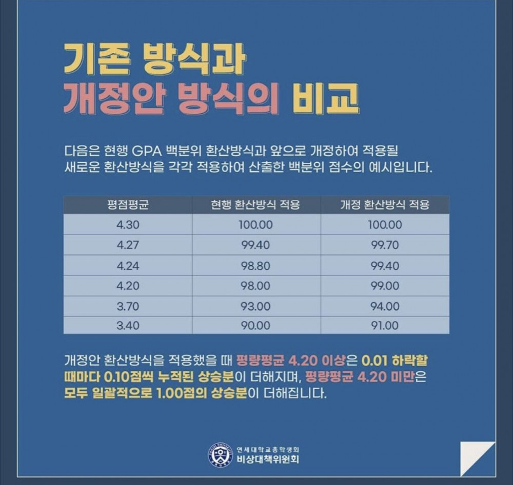 서연고 중에서 연세대가 제일 학점 잘 주는 학교인데 학점 환산 더 높게 바꾼다고 해서 논란 중이라네요.