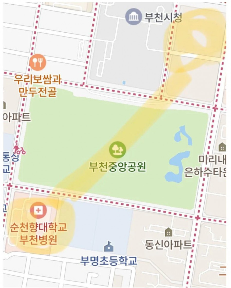 꼴랑 공원 하나 사이에 두고 대학병원이 위치한 곳인데
