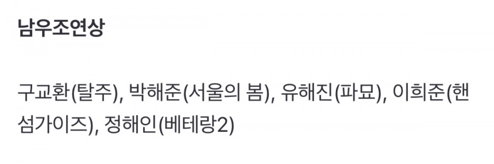 (구교환, 정해인, 이희준은 주연 2롤인데 조연상으로 밀려난거...)