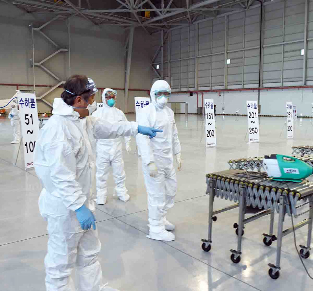 김계조 행정안전부 재난안전관리본부장이 31일 오전 서울 강서구 김포공항 임시검역소를 찾아 최근 중국 우한에서 발생한 신종 코로나 바이러스 감염증에 대비해 사전 출입국 현장 검역 상황을 점검하고 있다. / 행정안전부