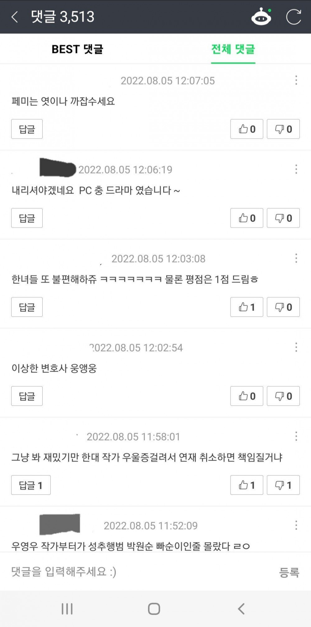 원작이 논란 생기고 벌써 민심 나락.. 웹툰 자체는 괜찮다는 댓글 많았는데 드라마 제작진이 페미 드라마로 파생 작품도 나락가게 만들었음